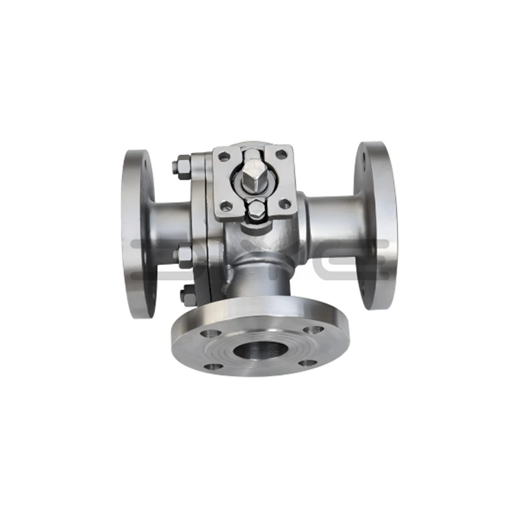 प्रामुख्याने मीडिया विलीनीकरण, वळवणे किंवा द्विदिशात्मक स्विचिंगसाठी वापरले जाते. बॉल कोअरमध्ये टी-आकाराचे थ्रू-होल डिझाइन आहे, जे लवचिकपणे "एक इनलेट, दोन आउटलेट," "दोन इनलेट, एक आउटलेट," किंवा "टू इनलेट, दोन आउटलेट" नियंत्रण सक्षम करते. गुळगुळीत स्विचिंग, घट्ट सीलिंग आणि दोन सुसंगत माध्यमांचे एकाचवेळी वितरण यामुळे ते जटिल पाइपलाइनमध्ये बहु-दिशात्मक प्रवाह नियंत्रणासाठी योग्य बनते.