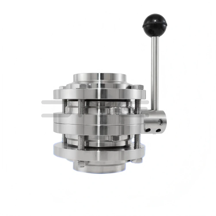सॅनिटरी 3-पीस बटरफ्लाय व्हॉल्व्हमध्ये क्लासिक स्प्लिट थ्री-पीस स्ट्रक्चर आहे, ज्यामध्ये सेंट्रल व्हॉल्व्ह बॉडी, दोन्ही बाजूंना दोन कनेक्टिंग फ्लँज किंवा क्लॅम्प्स आणि अंतर्गत व्हॉल्व्ह डिस्क, स्टेम आणि सील असतात. एकात्मिक बटरफ्लाय वाल्व्हच्या तुलनेत, त्याचा सर्वात मोठा फायदा म्हणजे पूर्ण वियोग करणे. देखभाल आणि साफसफाईसाठी संपूर्ण पाइपलाइन वेगळे करणे आवश्यक नाही; दोन्ही टोकांना फक्त क्लॅम्प किंवा बोल्ट सैल केल्याने संपूर्ण साफसफाई, निर्जंतुकीकरण आणि असुरक्षित भाग बदलण्याची परवानगी मिळते, ज्यामुळे डाउनटाइम आणि देखभाल खर्च लक्षणीयरीत्या कमी होतो.